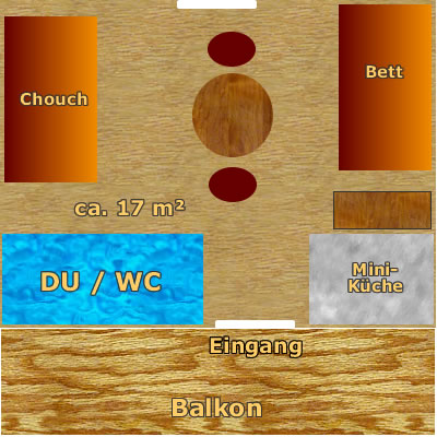 Ausstattung 2-Bttzimmer, 17 m² - 30 Euro / Tag* Preis bei einem Aufenthalt ab 3 Nächten |